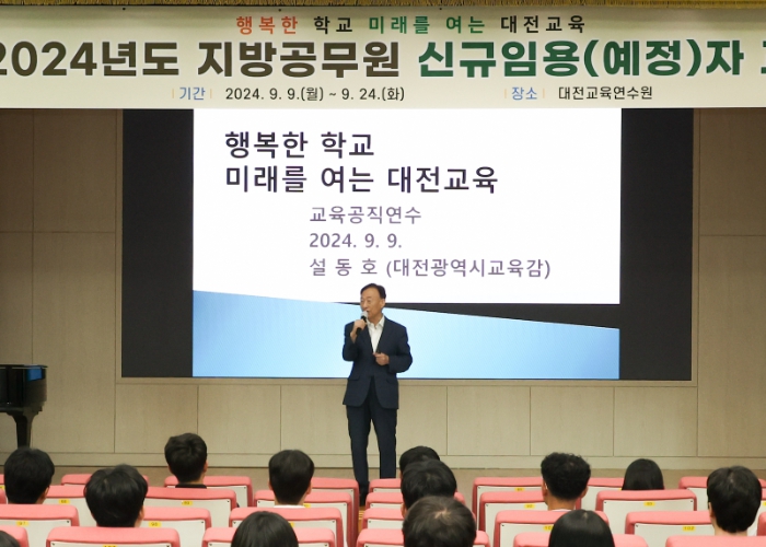 [뉴스서치] 대전교육연수원은 2024년 지방공무원 신규임용(예정)자 102명을 대상으로 9월 9일, 설동호 대전광역시교육감 특강을 실시했다고 밝혔다.