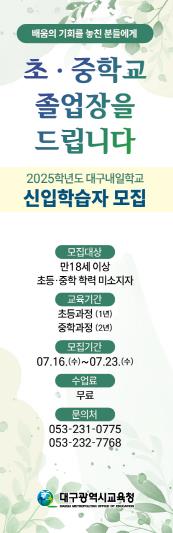 한편, 대구내일학교는 대구시교육청에서 운영하는 학력인정 문해교육 프로그램으로 학령기에 배움의 기회를 놓친 만 18세 이상 성인에게 초․중학교 학력을 인정받을 수 있는 교육 기회를 제공하고 있다.