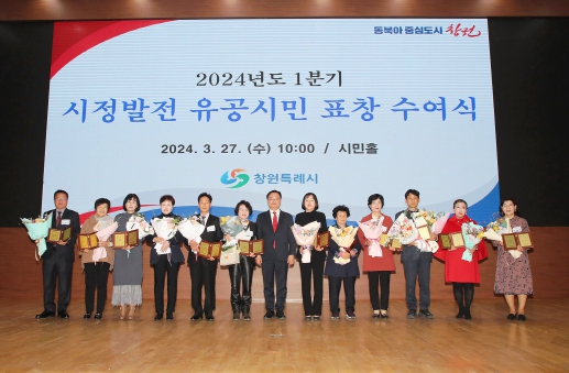 [뉴스서치] 창원특례시는 27일 오전 10시 시청 시민 홀에서 ‘2024년도 1분기 시정발전 유공 시민 표창 수여식’을 개최했다.