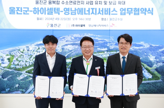 [뉴스서치] 울진군은 지난 22일 울진군청에서 ㈜하이셀텍, 영남에너지서비스(주)와‘울진군 융복합 수소연료전지 사업 유치 및 보급 확대를 위한 업무협약’을 체결했다.