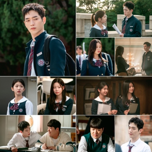 5일(오늘) 공개된 스틸에는 고등학생으로 위장 잠입하게 된 정해성(서강준 분)과 같은 학교에 다니는 병문고 학생회 학생회장 이예나(김민주 분), 해성의 정체를 유일하게 알고 있는 안유정(박세현 분), 똘똘한 해성의 조력자 이동민(신준항 분)의 다채로운 모습이 엿보인다.