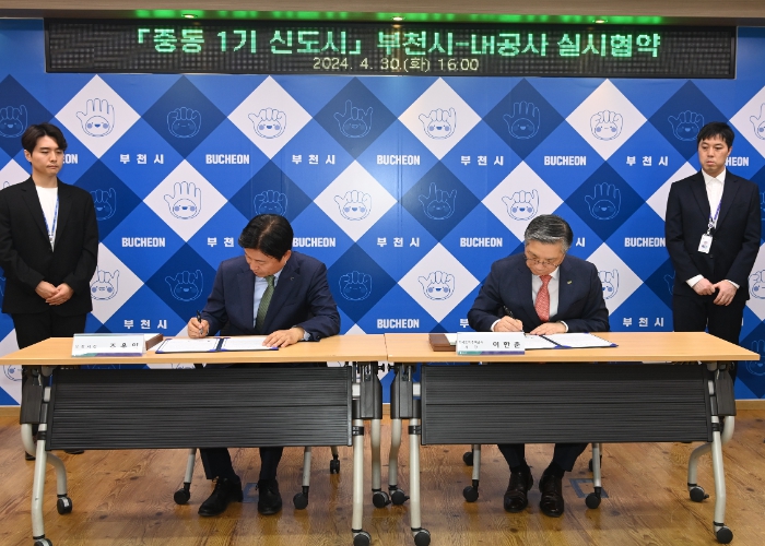 ▲ 조용익 부천시장(왼쪽)과 이한준 LH 사장이 협약서에 서명하고 있다. |