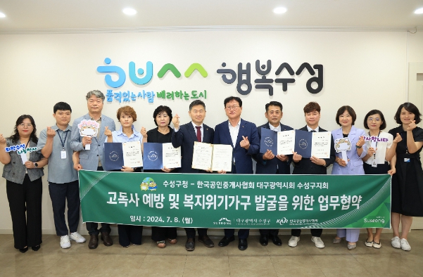 [뉴스서치] 대구 수성구는 지난 8일 한국공인중개사협회 대구지부 수성구지회와 ‘복지위기가구 발굴 및 고독사 예방’을 위한 업무협약을 체결했다.