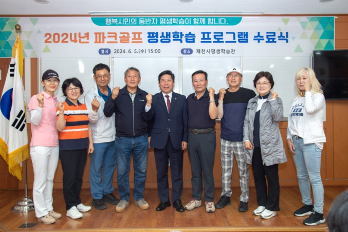 [뉴스서치] 제천시는 평생학습 프로그램으로 많은 관심과 인기를 얻고 있는 파크골프 입문자과정 1기와 2기 통합 수료식이 최근 평생학습관 강당에서 열렸다.