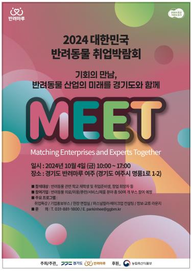 ‘기회의 만남, 반려동물 산업의 미래를 경기도와 함께’라는 슬로건 아래 열리는 이번 박람회는 전국 반려동물 관련 학과 학생, 교수, 기업체 관계자 와 도민 등이 참가할 수 있다.