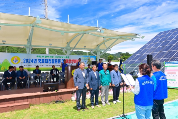 이번 행사는 녹색생활 분위기 조성과 바르게살기운동 활성화를 위해 개최됐으며, 박현국 군수, 권영준 군의회의장 및 군의원, 바르게살기 회원 등 250명이 참석해 하천변에 방치된 영농폐기물을 처리하며 깨끗한 마을 만들기에 일조했다.
