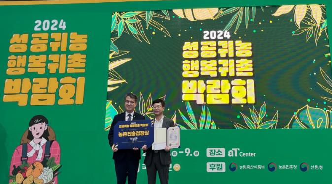 [뉴스서치] 3년 연속 귀농인 유치 전국 1위에 빛나는 의성군은 6월 7일부터 9일까지 서울aT센터에서 개최된 ‘2024 성공귀농 행복귀촌 박람회’에서 귀농·귀촌 우수 지자체 농촌진흥청장상을 수상했다고 밝혔다.