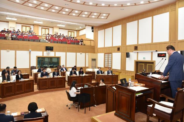 박순득 의장은 개회사에서 “이번 정례회는 2023회계연도 세입‧세출결산 및 예비비지출 승인 심사를 실시하는 중요한 회기이다.”며, “당초 편성된 예산이 계획된 목적에 맞게 효율적으로 집행되었는지 세심하게 살펴 주시고 집행부 공무원께서는 성실하고 적극적인 협조를 당부드린다.”고 말했다.
