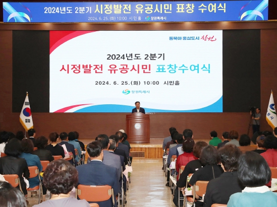 [뉴스서치] 창원특례시는 25일 오전 10시 시청 시민홀에서 ‘2024년도 2분기 시정발전 유공시민 표창 수여식’을 개최했다.