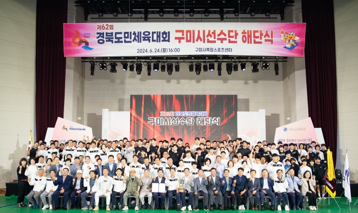 [뉴스서치] 구미시는 24일 복합스포츠센터 다목적체육관에서 구미시체육회 주관으로 도‧시의원, 기관단체장, 관내 학교장, 체육회 임원, 선수 등 500여 명이 참석한 가운데 『제62회 경북도민체육대회 구미시 선수단 해단식』을 개최했다.