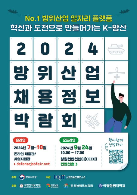 [뉴스서치] 방위사업청과 국방기술진흥연구소는 9월 24일 창원컨벤션센터 컨벤션홀Ⅲ에서 구인난을 겪고 있는 방산기업과 미래 방위산업을 이끌어갈 인재들의 만남과 소통을 위한 '2024 방위산업 채용정보 박람회'를 개최한다고 밝혔다.