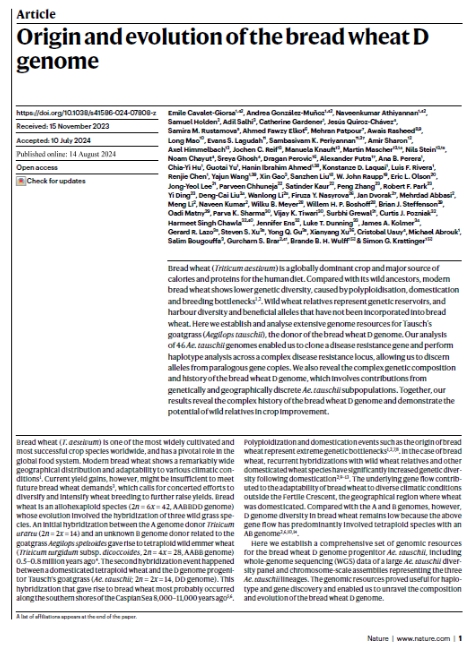 또한, 600자원 중 46자원을 선택해 고품질 참조 범유전체를 구축하고, 유전자-전장 연관성 분석연구로 밀 생산에 큰 피해를 주는 녹병에 새로운 저항성 유전자(SrTA1662, Lr39)를 찾아내는 성과도 거뒀다.