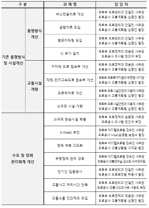 | ▲ 「고속도로 교통정체 개선 방안」 과제 현황 |