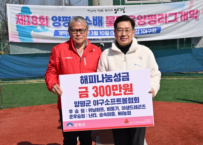 [뉴스서치] 양평군 야구소프트볼협회는 지난 10일 열린 ‘제18회 양평군수배 물맑은 양평 사회인 야구대회’ 개막식에서 취약계층을 위한 성금 300만원을 기탁했다고 밝혔다.