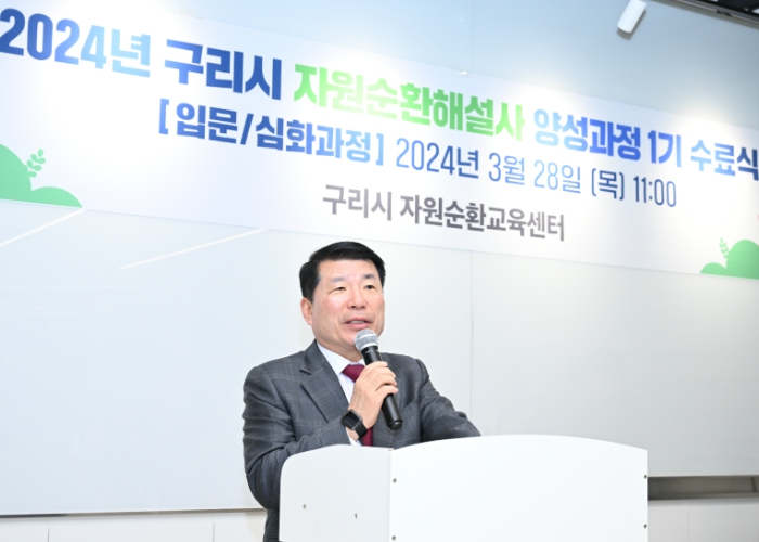 [뉴스서치] 구리시는 지난 28일 구리시 자원순환교육센터 교육장에서 자원순환 해설사 양성과정 1기 수강자 30명 전원이 참석한 가운데 수료식을 개최했다.
