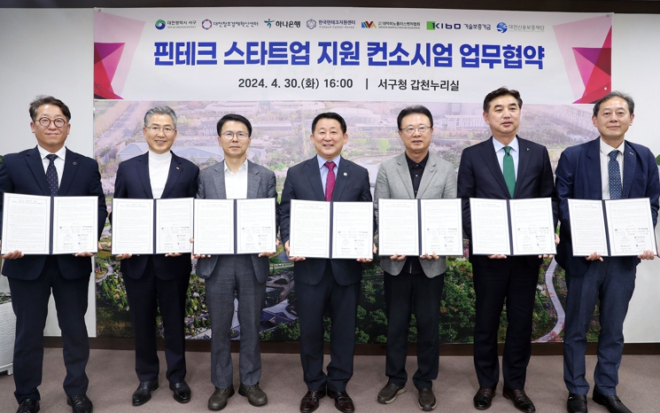 [뉴스서치] 대전 서구는 지난 30일 구청 갑천누리실에서 창업 인큐베이팅 전문기관 및 금융기관과 핀테크 스타트업 지원을 위한 컨소시엄 업무협약을 체결했다.