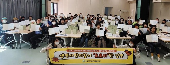교육에 참여한 명예사회복지공무원 100여명은 “도움을 주고 토닥여주는 리(이)들” 이라는 뜻의 생명사랑지킴단'도토리단'으로 위촉되어 향후 자살 고위험군의 신호를 파악하고 전문기관과의 연계 및 지속적인 관심과 소통을 통한 자살예방 활동에 적극 참여할 예정이다.