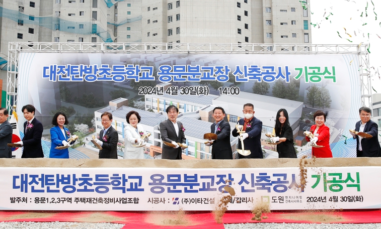 [뉴스서치] 대전 서구는 지난 30일 시‧구의원, 교육감, 조합원, 주민 등 50여 명이 참석한 가운데 (가칭)대전탄방초 용문분교 신축공사 기공식을 개최했다.