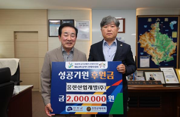 [뉴스서치] 웅진산업개발(주)는 24일 진천군청을 방문해 제63회 충북 도민체육대회 운영을 위해 써달라며 후원금 200만 원을 전달했다.