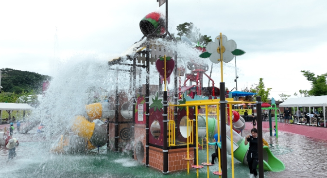 시는 다양한 놀이기구, 바닥분수를 설치해 아이들의 놀거리를 만들어준 것은 물론 음수대, 그늘막, 샤워막 등을 구비해 이용객 모두가 편안하고 쉴 수 있는 공간도 만들었다.
