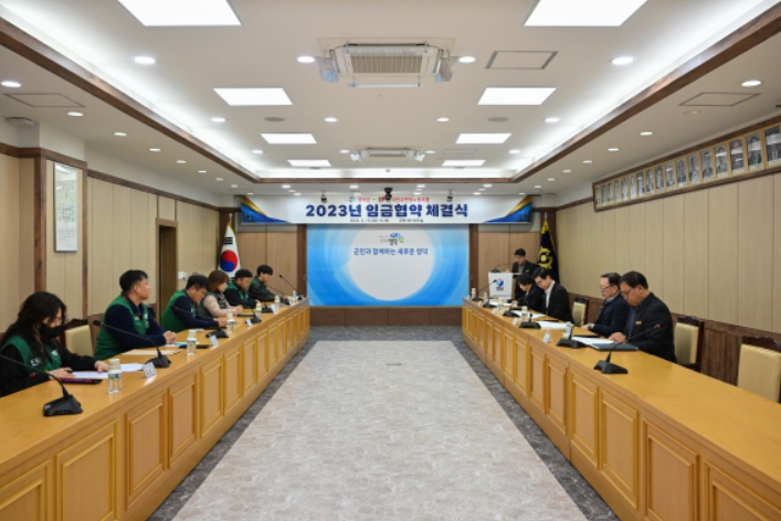 김광열 군수는 “어려운 군 재정 여건을 함께 이해하고 동감하는 마음을 통해 임금협상이 잘 마무리될 수 있었다”며, “앞으로도 노사 양측의 화합과 협력을 통해 근로자의 처우 개선과 군 발전을 위해 함께 노력해 나가겠다”고 전했다.