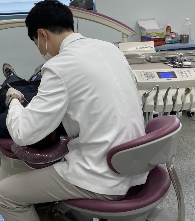 ▲ 밀양시보건소에서 임플란트 지원사업 대상자의 구강 상태를 검진하고 있다. |