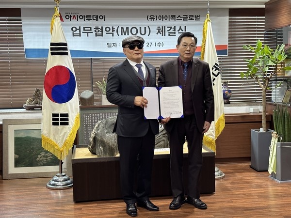 ▲ 김동범 아이콕스글로벌 공동대표(왼쪽)와 우종순 아시아투데이 대표이사 |