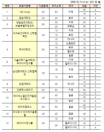 ▲ 2024년 해외일경험사업 선정기관 목록 |