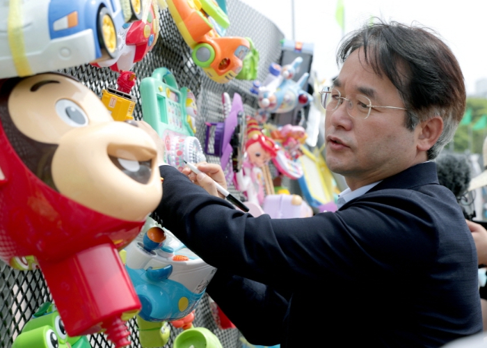 ‘태양의 꽃’설치 예술 체험은 사전 신청을 받아 진행한다. 공공예술에 관심이 있는 유치원생, 초등학생 단체 관람객들이 세계적인 아티스트 최정화 작가와 함께 직접 재활용 플라스틱 장난감을 골라 펜스에 묶고 매달며 꽃벽을 함께 만들어가는 과정으로 진행됐다. 체험에 참여한 관람객은 플라스틱 재활용 장난감을 새로운 관점으로 관찰하고 경험에 대해 이야기를 나눈 뒤, 꽃모종을 선물 받았다.