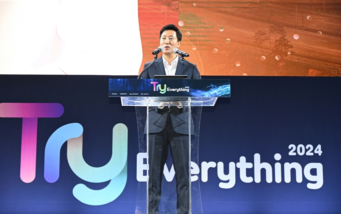 ▲ 오세훈 서울시장이 11일 오전 DDP에서 열린 「트라이 에브리싱 2024」에 참석해 전세계 스타트업과 벤처캐피탈 등 창업생태계 관계자들에게 개회사를 하고 있다. |