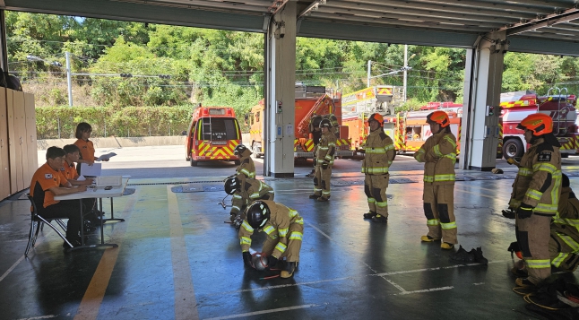 이번 평가는 소방 표준작전절차(SOP), 무선통신약어 등 이론평가와 소방호스전개 및 회수, 로프매듭 기구 묶기 등 실기 평가를 실시해 현장대원들의 기술과 응용능력을 종합적으로 평가했다.