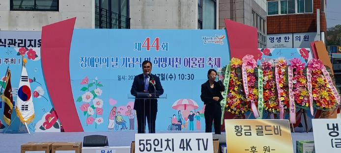 김기웅 군수는 기념사를 통해 “장애인과 지역주민이 함께하는 화합의 장이 되었길 바란다”며, “장애인과 비장애인이 함께 행복할 수 있는 지역사회를 만들기 위해 최선을 다하겠다”고 밝혔다.
