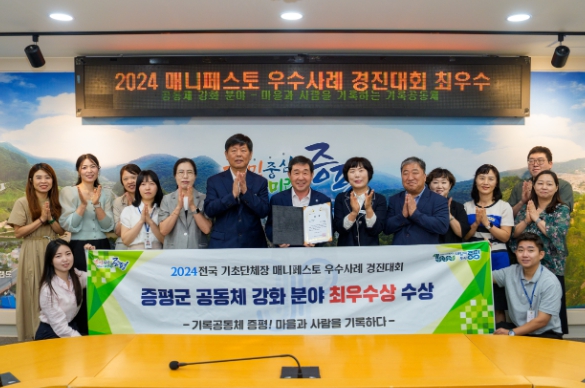[뉴스서치] 충북 증평군이 ‘2024년 전국 기초단체장 매니페스토 우수사례 경진대회’에서 공동체 강화 분야 최우수상을 수상했다.