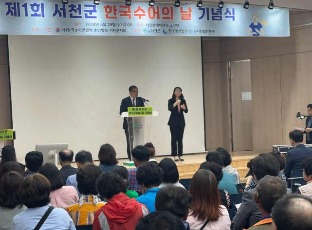 [뉴스서치] 서천군이 29일 서천문예의전당 소강당에서 충남농아인협회 서천군지회가 주관하는 제1회 서천군 한국수어의 날 기념식을 개최했다.