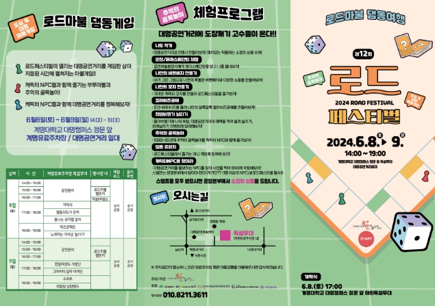 매년 로드페스티벌에서는 많은 공연예술단체들이 참여하여 다채로운 볼거리를 선사해왔는데 특히 올해는 12주년을 맞이하여, 공연뿐만 아니라 축제장에서 시민들이 직접 참여하며 즐길 수 있는 콘텐츠‘로드마불 댐동여행’을 기획하였다.