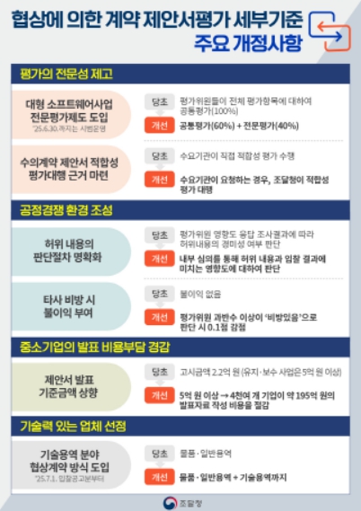 ▲ 조달청 협상에 의한 계약 제안서평가 세부기준 주요 개정내용 |