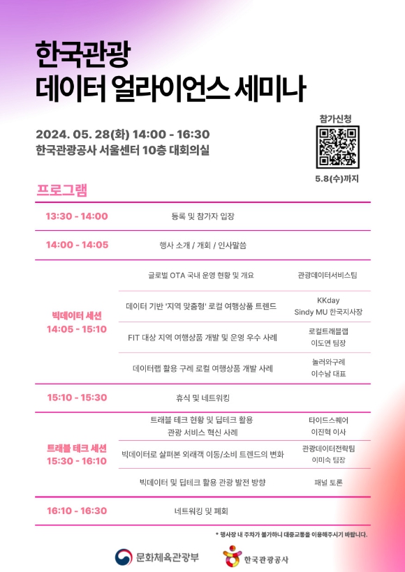 문화체육관광부는 관광산업 현장의 수요를 반영해 한국관광공사와 함께 5월 28일 한국관광공사 서울센터에서 ‘한국관광 데이터 얼라이언스 세미나’를 개최했다.