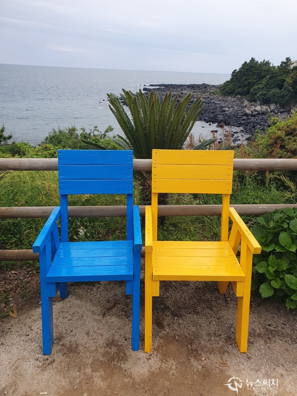 이 의자에 앉아 사진을 찍으면 뒤쪽으로 제주 바다가 배경으로 찍혀서 사진 찍는 명소로도 꼽힌다.