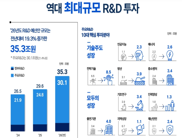 ▲ ’26년도 투자 규모 및 주요R&D 10대 핵심 투자분야 |