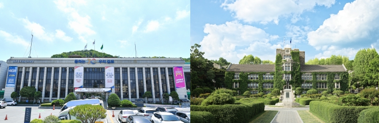 ▲ 김포시 전경과 연세대 언더우드관 전경 |