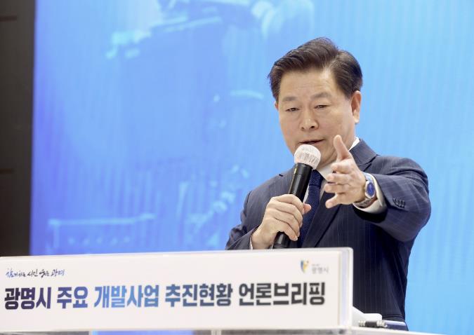 ▲ 박승원 광명시장은 4일 오전 시청 대회의실에서 '광명시 주요 개발사업 추진현황' 관련 기자회견을 가졌다. |