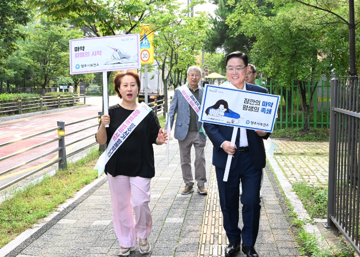이번 캠페인은 날로 심각해지는 마약의 위험성 등을 전파하고 마약류 및 약물 오․남용에 따른 폐해를 알리고자 강수현 양주시장을 비롯해 김정은 보건소장과 보건행정과장 및 직원, 동두천양주교육지원청 김영관 교육과장과 양주교육지원센터장 및 장학사, 옥빛초·옥빛중·옥빛고 교장 및 학생, 양주경찰서 여성청소년과 경찰, 양주시 약사회 회장 및 총무, 옥정2동장 및 청소년지도위원, 각 학교 학부모운영위원 등 50여명이 참여했다.