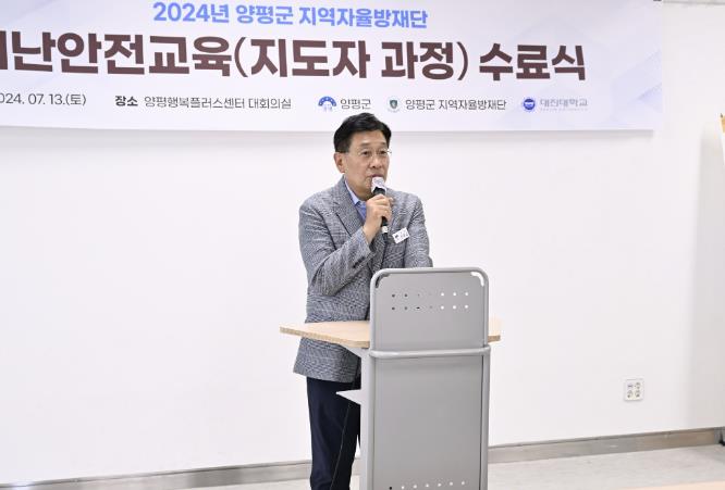 교육 수료식에 참석한 전진선 양평군수는 남기범 양평군 자율방재단장에게 직접 수료증과 재난교육이수 자격증을 수여하며 “군민들의 안전은 교육에 참여한 여러분의 손끝으로 지켜지는 것”이라며 “앞으로 있을 집중호우와 태풍 등 자연재난으로부터 지역을 살리는 역할에 많은 도움을 당부드린다”고 전했다.