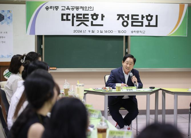 이날 정담회에는 주광덕 시장을 비롯한 송라중학교장, 학교 관계자 및 학부모 등 교육공동체 24명이 참석해 교육 및 지역 현안에 대해 논의했다.