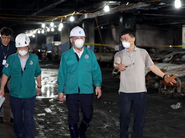 정 의장은 이날 오후 최정규 서구 부구청장으로부터 화재 피해 상황과 현재 대응조치에 대한 상세한 브리핑을 들은 후 아파트 지하 1층 주차장을 들러보며 화재로 인한 차량 및 주민 피해 현장을 살폈다.