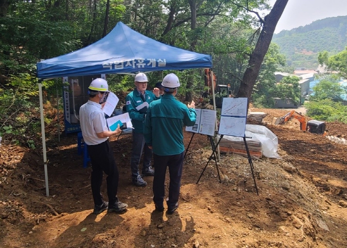 사업지는 계곡부에 침식으로 토사유출이 우려됨에 따라 하부 공장시설 보호를 위해 사방댐 1개소 및 계류보전 0.25km의 사업을 진행하고 있으며, 장마철 산림재난 예방과 대응 체계를 점검했다.