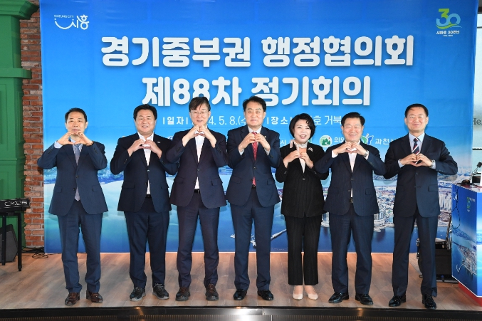 [뉴스서치] 시흥시는 8일 거북섬에 있는 마리나썬셋에서 ‘제88차 경기중부권행정협의회’를 개최했다. 이번 회의에는 임병택 시흥시장을 비롯해 안산, 안양, 광명, 군포, 의왕, 과천 총 7개 회원 도시 단체장이 참석했다.