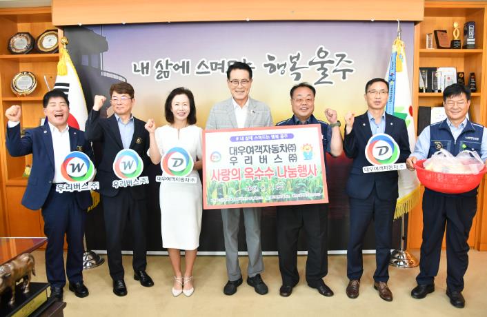 이날 전달된 옥수수는 대우여객자동차(주)·우리버스(주) 임직원들이 농장에서 직접 수확한 것으로, 울주군 사회복지시설 5개소에 전달될 예정이다.