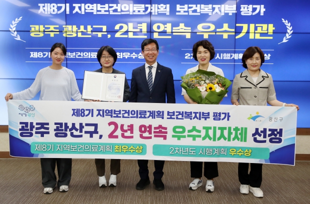 [뉴스서치] 광산구가 제8기 지역보건의료계획 1차 년도 시행 결과 및 2차 년도 시행계획 수립 평가에서 우수 지자체로 선정되어 보건복지부 장관상을 받았다.