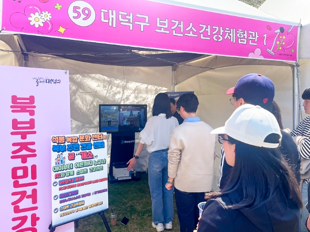 ▲ 대전 대덕구(구청장 최충규) 보건소는 지난 13~14일 대청호대덕뮤직페스티벌 기간 ‘스마트 건강체험관’을 설치, 축제 관람객들을 대상으로 신체 불균형 검사와 인공지능(AI) 결과 등을 통해 현장에서 실시간으로 운동처방 프로그램을 제공, 참가자들의 호평을 얻었다 |